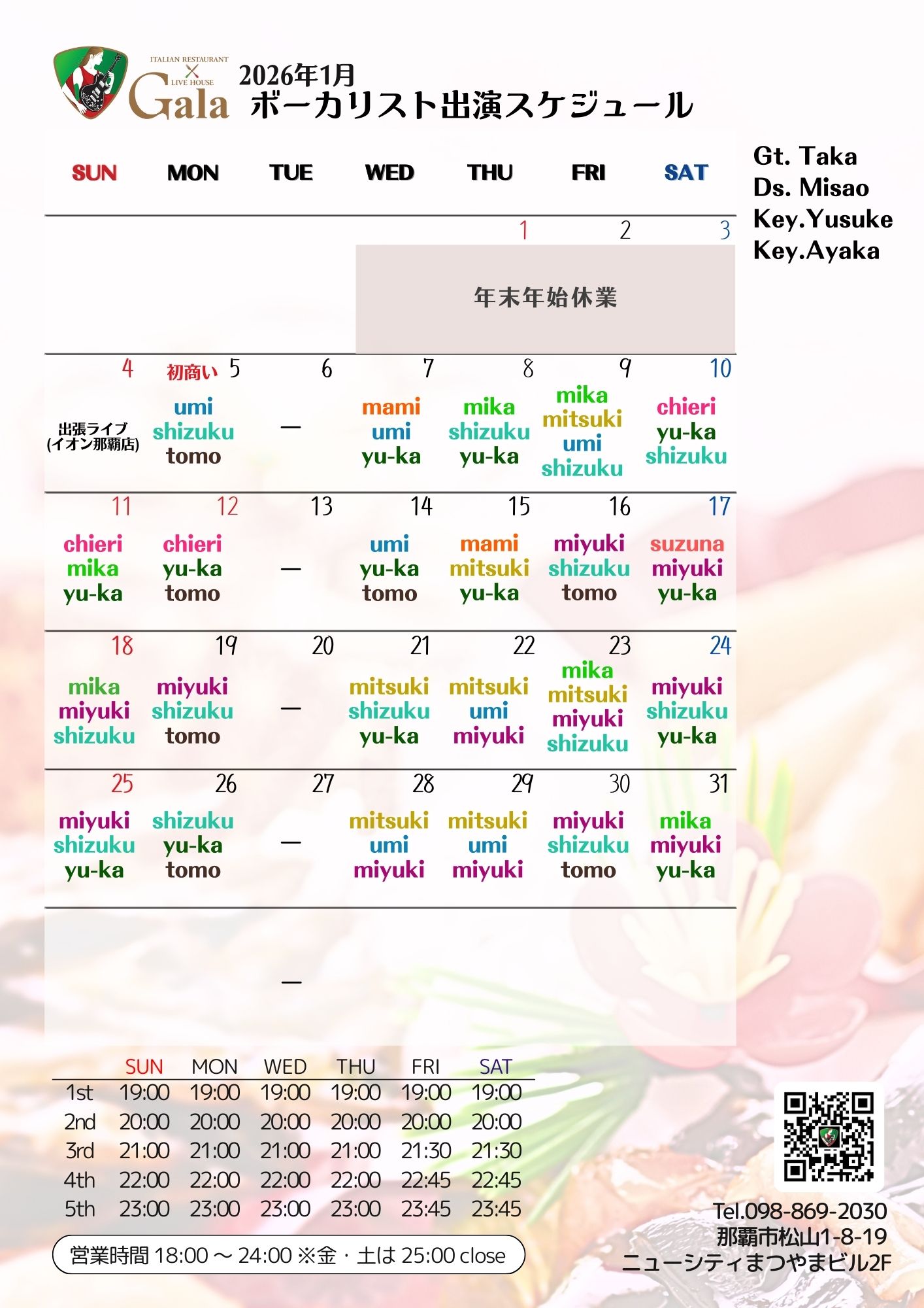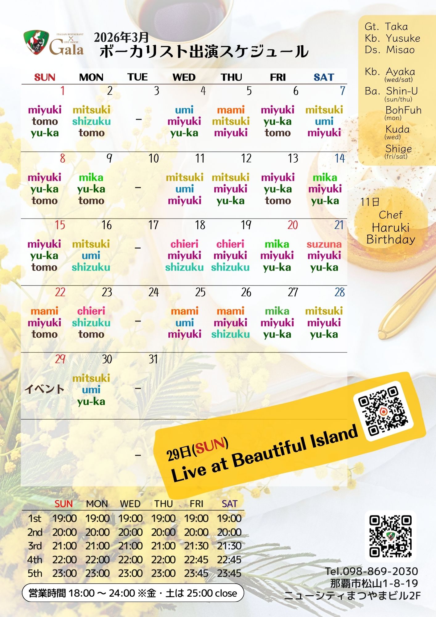 最初の角を右折してください。10メートルほど進むと左手2階にお店がございます。階段手前には看板が出ており、正面2階部分には煌々と輝くGalaの看板が。ゆいレール県庁前駅から徒歩5分の場所にあり、公共交通機関でのアクセスも抜群!